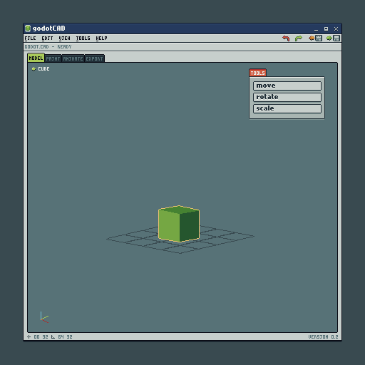 Initial prototype: 3D cube rendered within the legacy pixel-art UI.